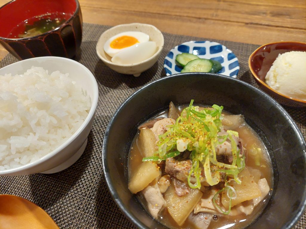お夕食には、じっくりコトコト…時間をかけて作った「もつ煮込み定食」をご用意いたします。