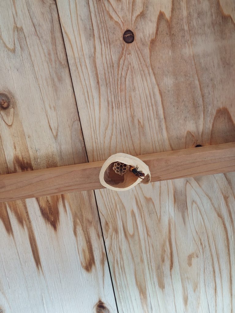 最近、蜂が1匹飛んでいたな〜と思っていたら、いつの間に!