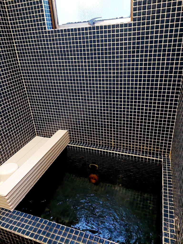 家族風呂くらいの小さなお風呂が2ヶ所あり、内側から鍵をかけてご使用いただけます。タイル張りのレトロなお風呂ですが、深さがあり温まりますよ(^^)