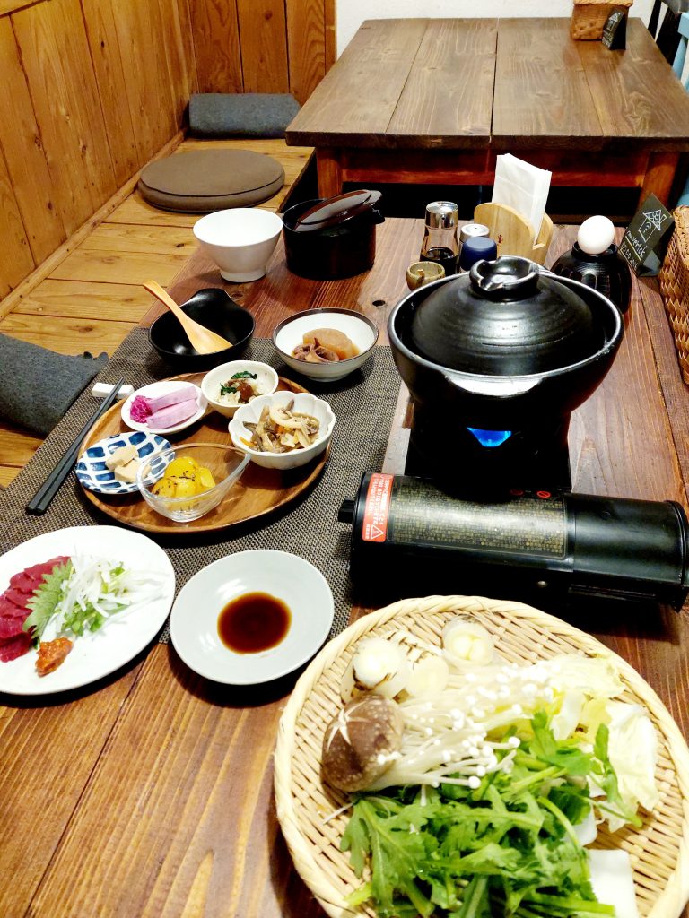 いつもご宿泊有難うございます!!お鍋と馬刺しと日本酒と山話♪