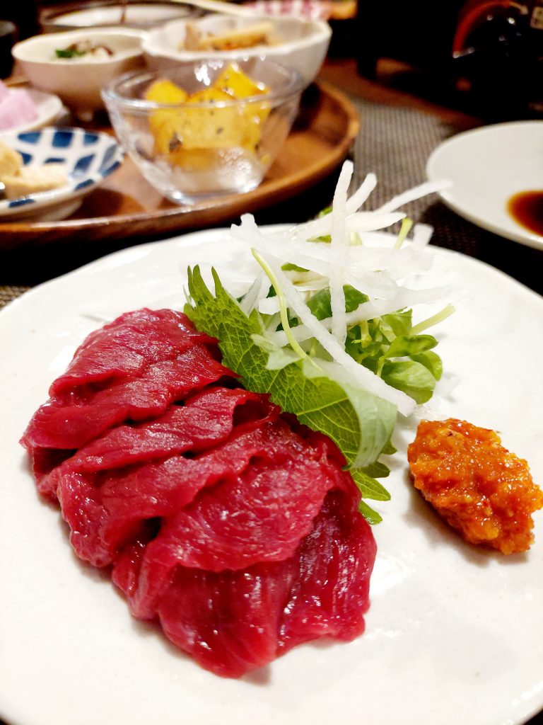 馬刺しのご注文もいただきました。 福島の日本酒利き酒と、桜肉とお鍋で、またお山のお話を伺いながらゆっくりと。。。
