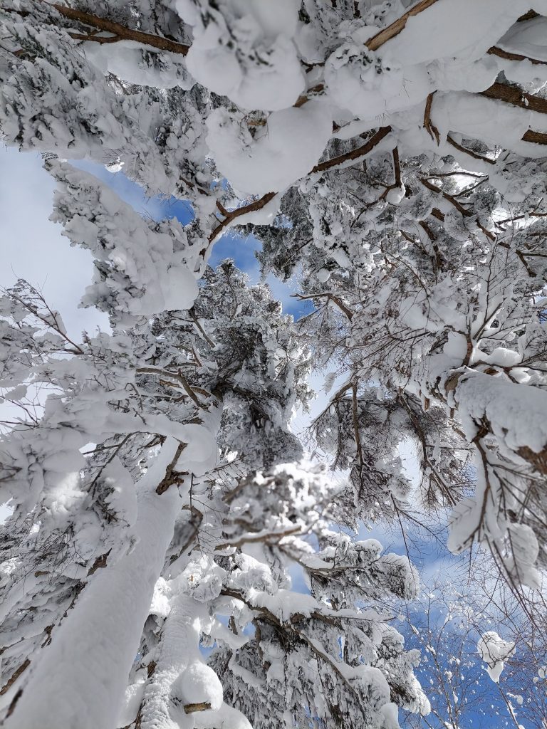 木にはたっぷり雪がつき、まわりは真っ白で柔らかそうな雪が積もり、